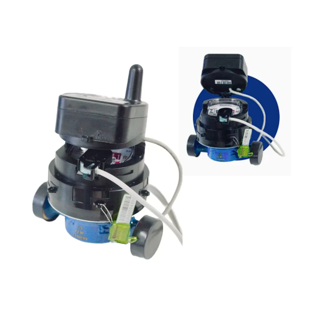 Hidrômetro acoplado com sistema rádio frequência, que possibilita o monitoramento de consumo e leitura remota em diversas soluções de gestão de água.